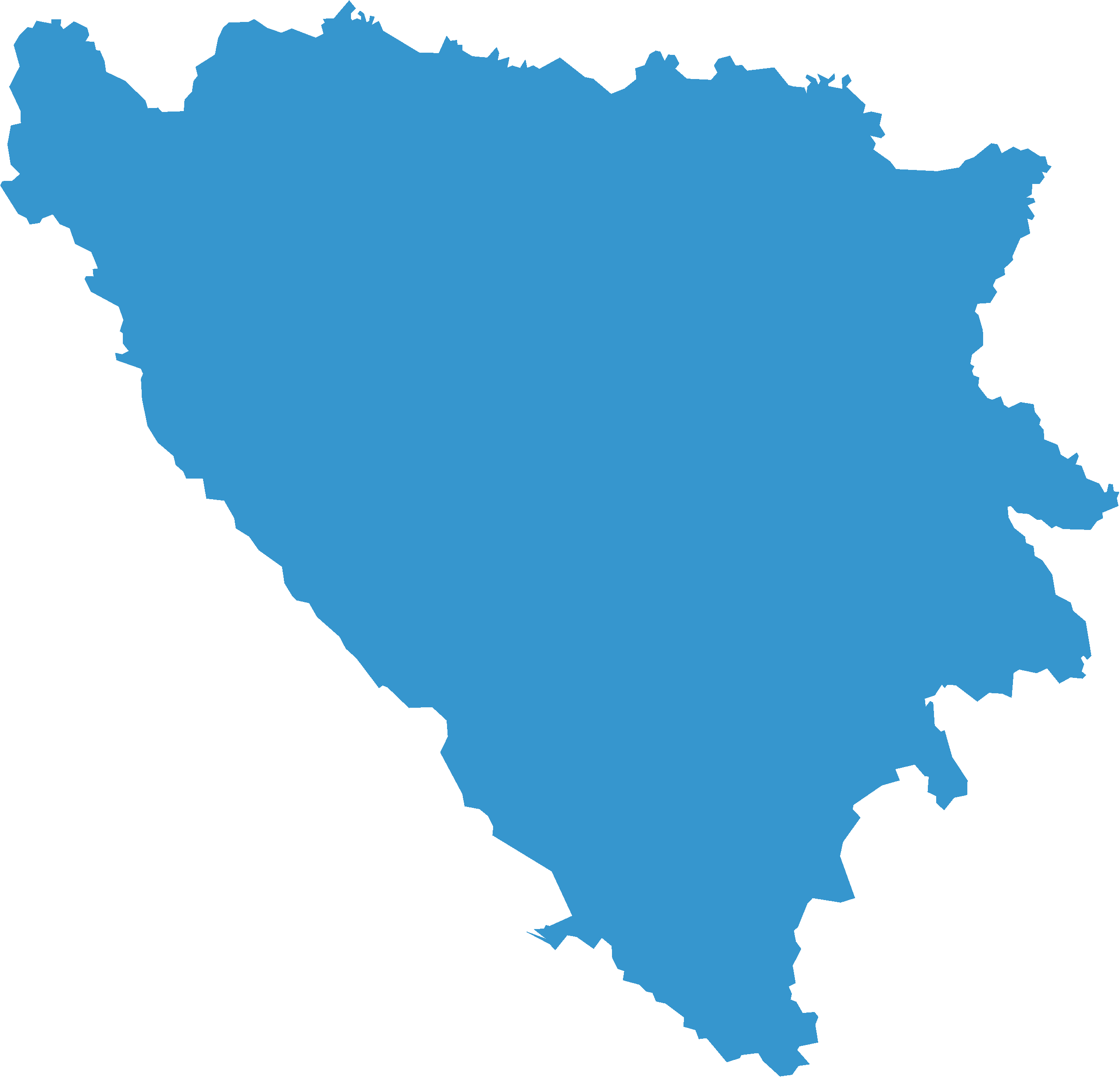 The mountainous country of Bosnia and Herzegovina in Southeastern Europe borders the Adriatic Sea, Croatia, Montenegro, and Serbia. Slightly smaller than West Virginia, Bosnia and Herzegovina became one of six republics of Yugoslavia after WWII. After declaring their independence in 1992, the country underwent war as ethnic nationalists vied for control of various territories. Ethnic cleansing campaigns between 1992 and 1995 killed thousands and displaced millions. International intervention led to a peace agreement in 1995.